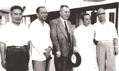 林语堂和南洋大学高层管理团队,从左至右:伍启元、林语堂、胡博渊、熊式一、杨介眉