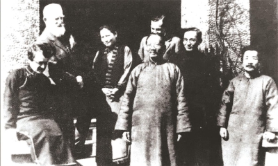 从右至左:鲁迅、林语堂、伊罗生、蔡元培、宋庆龄、萧伯纳、史沫特莱,上海,1933年