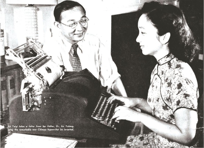 林语堂请二女儿林太乙用明快打字机打一封信,纽约,1947年