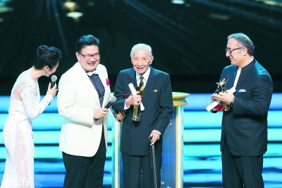 96岁台湾金钟影帝常枫凭借作品《拂乡心》,与伊朗演员哈穆德·贝哈德一同获得最佳男演员殊荣。《拂乡心》是秦海璐导演的处女座,同时这部影片也是常枫的封山之作。1923年出生的常枫拄着拐杖上台,他激动地说:“我年纪大了,记忆力不好了,说话啰里啰唆!上海电影节跟我有默契,我这么大的年纪,能够站在这里领奖,这是非常不容易的,我也非常谢谢各位评审。”全场观众起立为这位老演员鼓掌(上图)。
