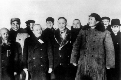 抵达北平的毛泽东等人与各界人士在西郊机场合影