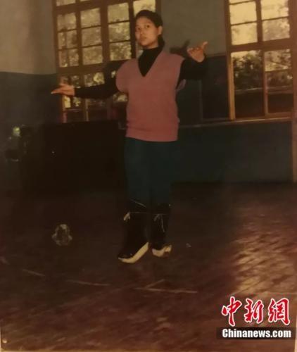 年轻的王玉梅在进行川剧基本功演练。受访者供图