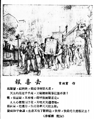 庆祝和平会议,生产又有了新创造,快呀,快向毛主席报喜去!