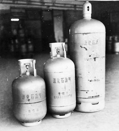 图2:上世纪60年代,北京有了首批使用煤气罐的液化石油气用户。图为1966年至1972年使用的钢瓶。