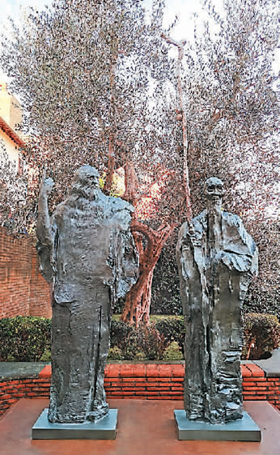 雕塑《超越时空的对话——意大利艺术巨匠达·芬奇与中国画家齐白石》立于意大利芬奇市