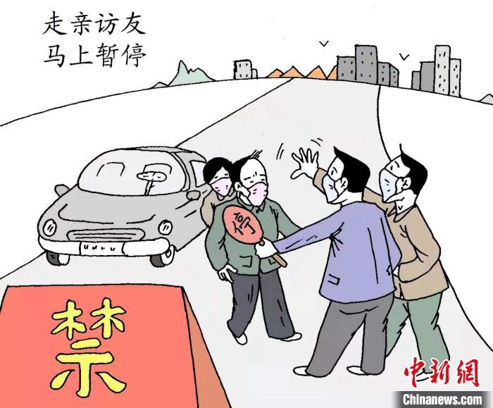 图为张新江创作的漫画“走亲访友 马上暂停”。 受访者供图 摄