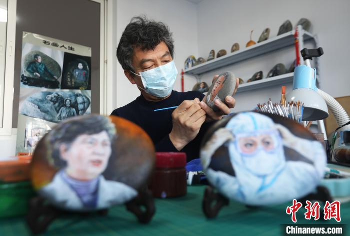 近日,58岁的河北省张家口市民间艺术家协会会员陈智旺经10余日刻苦雕绘,雕制出以钟南山院士、李兰娟院士、身着隔离服的医护人员等为原型的多个石头雕画。病疫无情、张垣有爱,陈智旺想通过自己的作品为与病魔抗争的人们、奋战在防控一线的人们加油鼓劲,直至取得最后的胜利。