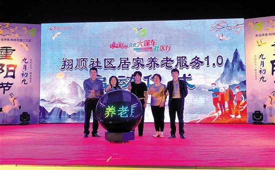 社区丰富的生活,除了业主的参与,也有物业部门的积极推动。在晚会现场,翔顺物业正式启动翔顺社区居家养老服务1.0,通过“智慧养老系列”“健康护航计划”“安居优陪系列”“心灵港湾系列”,为翔顺社区的老人们提供足不出户的社区服务。