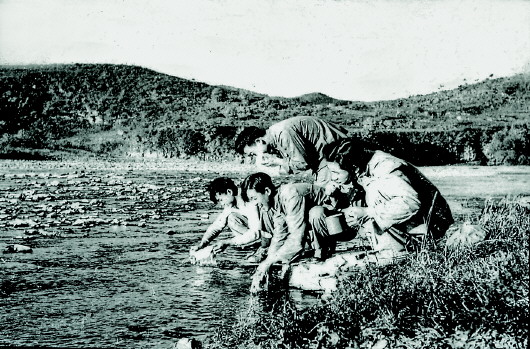 翻看着手里泛黄的黑白照片,黄宝善老人陷入了沉思。那是1952年的秋天,砾沼河水已经有了些许凉意,照片中的几个小伙子蹲在河边洗个脸,在战火中的朝鲜,享受片刻的宁静。