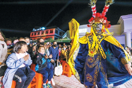 居住在顺义区空港街道新国展国际社区的外籍居民和中国居民举办邻里节,同台演出各具文化特色的节目,室外广场上的川剧变脸表演引得大家频频鼓掌叫好。