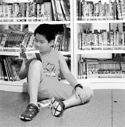 东莞市图书馆:在漫画图书馆席地而坐的小读者