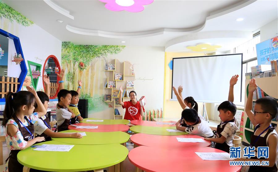 暑假期间,河北省邢台市新华书店开展“小小荐书员”活动,旨在通过职业体验锻炼孩子们的沟通能力,激发青少年的读书热情。 新华社发(张驰 摄)
