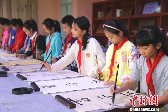 童心小学学生书写“君子”经文纪念孔子诞辰。 邓兴华 摄