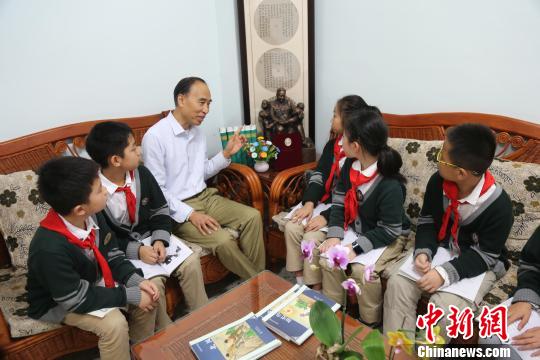 章创生老师向学生讲述著名教育家、君子陈鹤琴的故事。 邓兴华 摄
