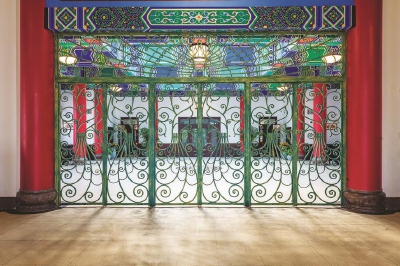 修缮后的杨浦区图书馆新馆,无论是一楼门厅铺设的红缸砖地坪、大厅天花彩画的修复、二楼大厅的孔雀门,还是重檐歇山顶的门楼、檐上点缀的吻兽件,都完美呈现出历史的原貌。董大酉先生的设计,采取西方古典建筑的三段式风格与中国传统建筑风格相结合的手法,整体建筑庄重典雅,具有