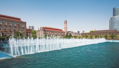 下图:杨浦区文化局联合复旦大学为滨江杨树浦水厂等16处文物和历史建筑贴上二维码,供市民扫描阅读建筑背后的故事。 陆建华 摄