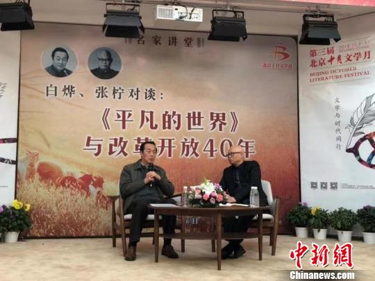 作为第三届“北京十月文学月”文化普及类重要活动之一,北京出版集团十月文学院主办的“名家讲堂”活动日前将目光聚焦于《平凡的世界》与改革开放40年,于日前邀请著名文学评论家,中国当代文学研究会会长白烨,与著名文学评论家、北京师范大学教授、中国当代文学与文化研究中心主任张柠围绕“《平凡的世界》与改革开放40年”进行对谈,带领广大听众重温茅盾文学奖经典之作《平凡的世界》,体味个人命运沉浮与整体时代走向之间的共振与撕扯,盘点中国社会生活的巨大变化。