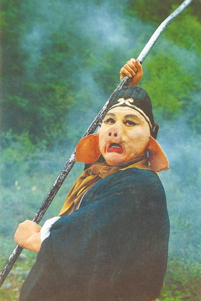 在这段独白中,猪八戒先是说出了自己在上天总督天河水兵的官职,也说出了自己 “逞雄撞入广寒宫”被贬下界的原因,以及自己“错投胎”,从相貌堂堂的天兵天将,变成一头刚鬣野猪的全部过程。从此就奠定了猪八戒在我们心目中——一个长嘴大耳朵的呆子,脑后又有一溜鬃毛,身体粗糙怕人,头脸就像个猪的模样,食肠却又甚大(高老庄太爷语)——贪吃怕事,又懒又馋,但也惹人生趣的形象。