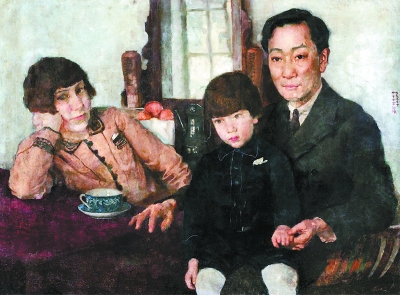 徐悲鸿于1928年创作的《杨仲子全家福》。音乐教育家杨仲子于1904年赴法国贡德省大学理学院留学,同时自学音乐理论和钢琴。