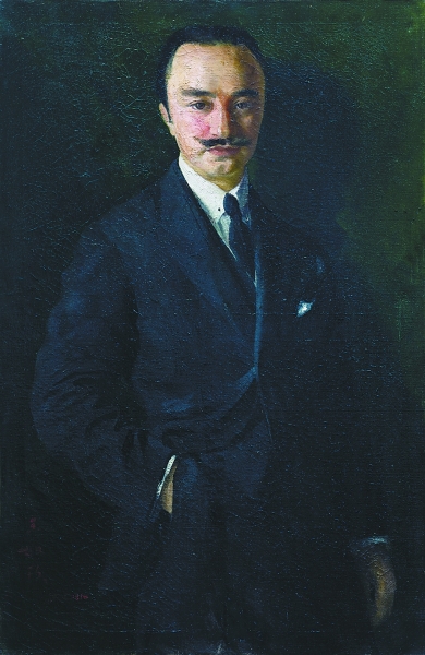 根据《肖像》左下部的落款“王如玖 Jan 1916”可知,这幅作品创作于1916年1月,基本沿袭了西方肖像画的创作方式:黑色的背景下,呈现了一位西装革履,右手放入口袋的中国男士形象。