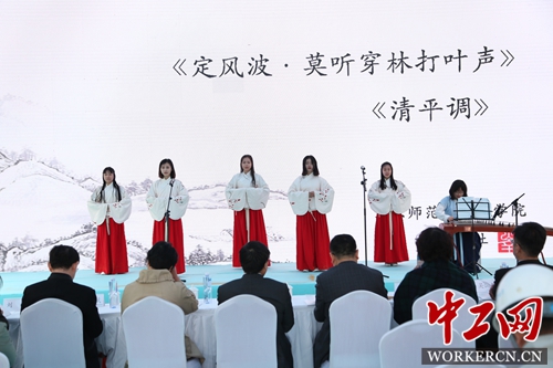 唱诵活动还包括古典诗词吟诵和歌曲表演。北京师范大学南山诗社表演了李白的《清平调》和苏轼的《定风波》,将活动推向又一个高潮。清新古朴的吟唱令人感受到传统文化的独特魅力。来自长辛店镇政府的李艺伟带来了一首自编歌曲《最美长辛店》,热情讴歌了长辛店所取得发展和成就,展现了长辛店今朝新风貌。