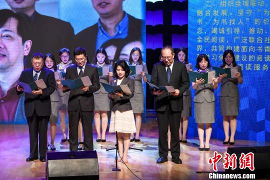中国图书馆界代表共同宣读了《服务全民阅读共创美好生活——中国图书馆界4·23全民阅读活动倡议书》 钟欣 摄