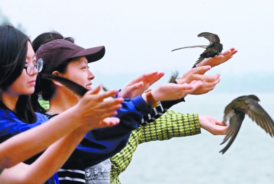 安装了定位仪的雨燕在颐和园放飞本报记者 吴镝摄