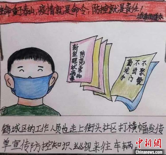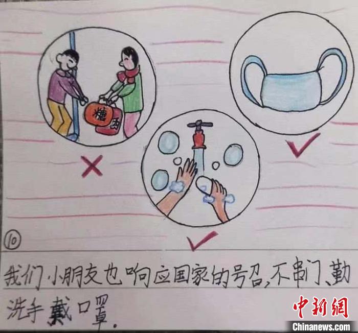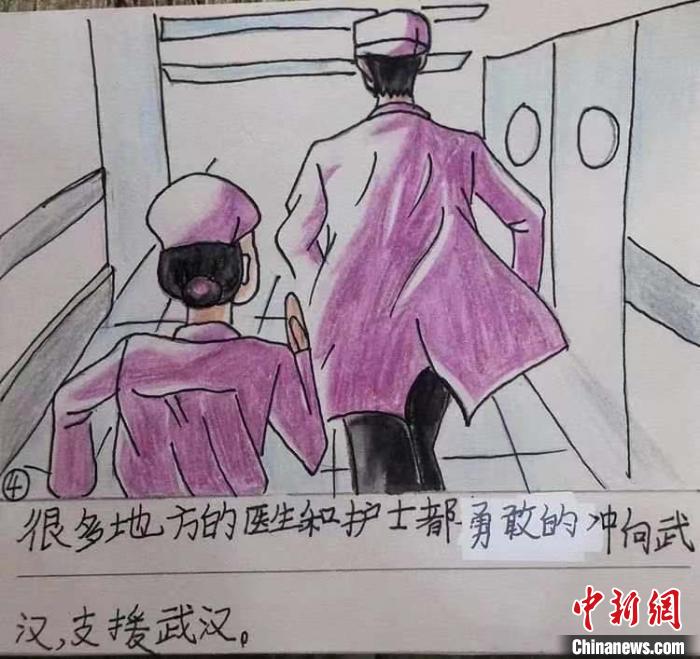 当春节遇上了疫情,很多人“宅”在家闲得无聊时,湖南怀化市三年级小学生邬佩霖和妈妈一起,把防疫的故事与希望画下来。她画下医护人员、警察、社区人员等“逆行”人群,并表示:“我希望所有逆风而行的人们像哪吒一样拥有三头六臂打败冠状病毒。”