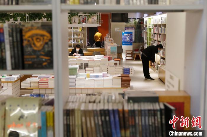 中新网上海3月1日电 (记者 殷立勤)3月1日,市民戴着口罩在大隐书局创智天地店选购书籍。暂休一月有余的上海大隐书局武康大楼店、创智天地店、大隐湖畔书局、大隐精舍、白玉兰广场店3月1日起恢复营业。