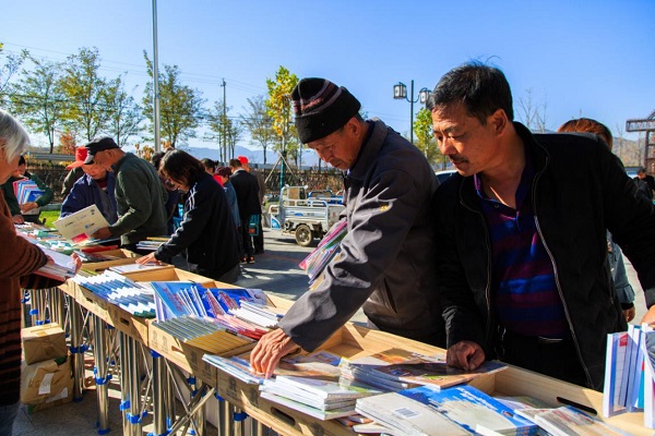 流动书香节现场,村民们正在挑选心仪的图书(主办方供图)