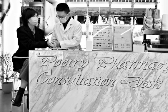 这个周末,三里屯北区开了一家新“药房”,坐诊的“专家”有诗人,也有文学主编,而他们开出的“药方”除了精选的诗集盲袋,还有一罐罐装满诗句的透明胶囊。