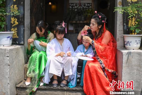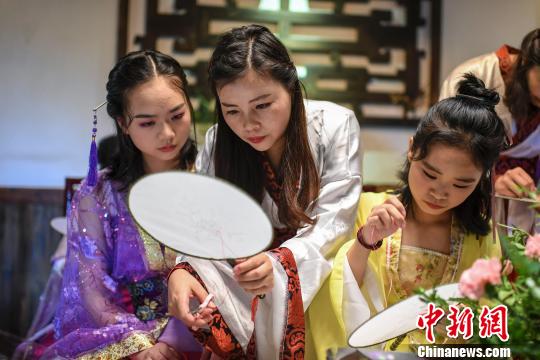 5月13日,正值母亲节,数十位湖南省湘绣研究所的大、小绣娘身着古装陪伴当地的老母亲绣起了湘绣,并现场吟诵《游子吟》,以此方式与老人们共度母亲节。