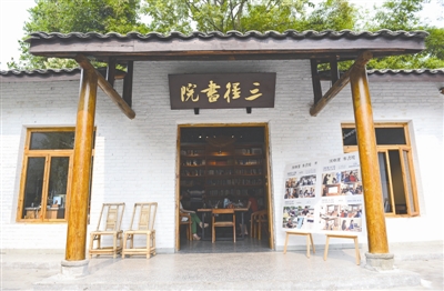 步入这个乡村小院,镂空的青砖围墙古朴而雅致,墙角的玫瑰半枯却余香犹存,径边的竹子在清风中摇曳;牌匾上“三径书院”四字尚有米芾遗风,川西民居的旧式房梁独具乡村特色,书院里原木的桌椅书架散发着朴素、自然的清香。