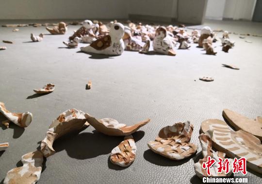 图为陶艺创作“被折断翅膀的鸟”。 刘玉桃 摄