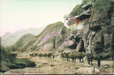 随德国海军司令海因里希王子登八达岭长城的摄影师科鲁滨,在回京的途中拍下的八达岭“五桂头”和骆驼队。