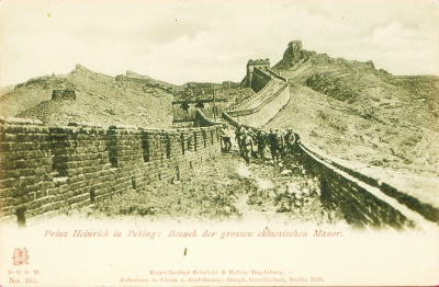 1898年应光绪皇帝的邀请,德国海军司令阿尔贝特·威廉·海因里希王子访问北京,他游览了北京的园林,骑马穿过布满乱石的关沟,来到八达岭长城,登八达岭长城到北四楼,跟随的摄影记者拍下了他登长城以及沿途的照片,在德国制成明信片让皇室人员欣赏。这也是最早应中国官方邀请来八达岭长城游览的外国军事官员。