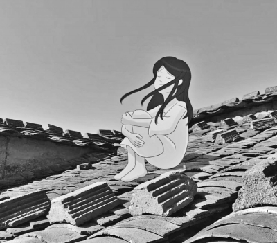 高蓉蓉文创卡通作品《屋顶上的少女》。