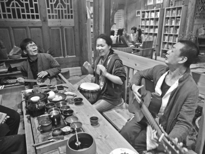 尽管远离城市,高蓉蓉觉得村里的生活充满了活力,因为大多数新村民都是年轻人,多才多艺,除了观点碰撞,音乐人还会定期在清吧里现场表演。