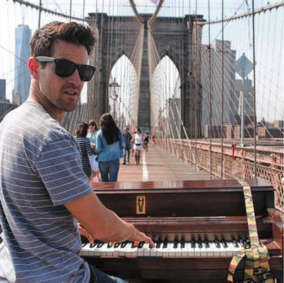 于是,在天气晴好的午后,从纽约咖啡馆的落地玻璃窗看出去,人们会发现一个怪人,推着一架钢琴从窗边路过。这就是Dotan深思熟虑之后决定的人生大事,带着钢琴走遍世界。
