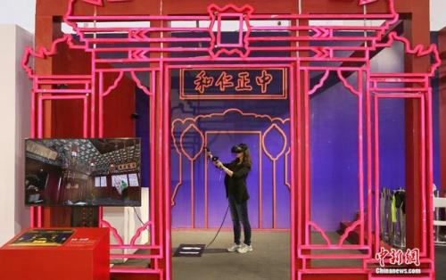 观众佩带VR头盔,参观养心殿全貌。主办方供图