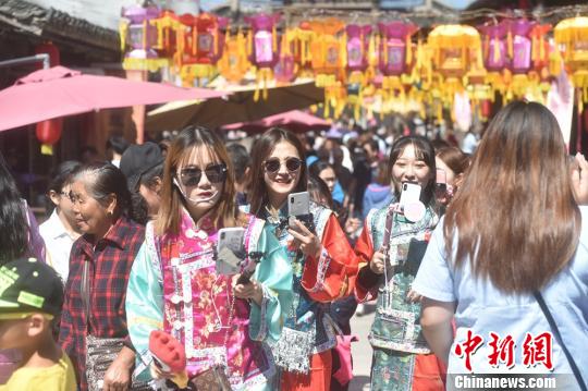 “网红”身着古装现场直播民俗文化的丰富多彩。 钟学满 摄