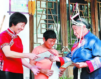 2009年起,蓝陈启组建的老年夕阳红消防志愿服务队,开始走村入寨,开展消防宣传培训,足迹遍布秀山丽水之间。在她的带动下,越来越多的少数民族群众关注消防、参与消防,志愿服务队的规模也不断壮大,目前已有120余名成员。畲族妇女拿出编织彩带的绝活,将“关注消防,平安你我”的字样绣到彩带上,送给村民和游客,以畲族人特有的礼仪,传播着消防安全知识。