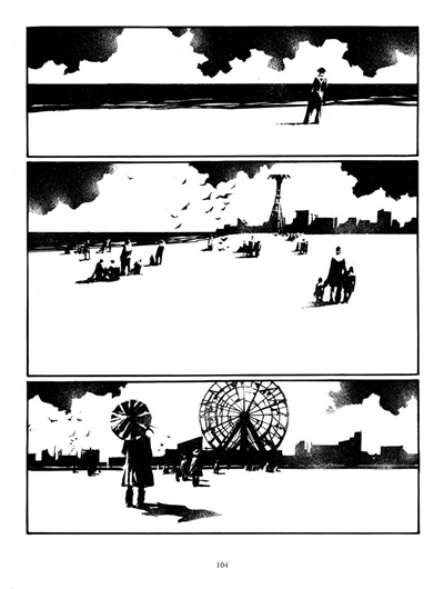图像小说《布鲁克林的巴别塔》讲述的便是一则现代巴别塔寓言。列夫·贝兹多米尼是一位上了年纪的旋转木马雕塑家,生活在纽约市的布鲁克林区,与孙女相依为命。在雕刻之余,他们喜欢去邻近的浓缩咖啡店喝一杯咖啡,吃一个牛角面包。这样宁静祥和的生活却被一封邀请信打破了。虚荣自负的纽约市长想在布鲁克林区修建一座世界最高塔,并邀请列夫打造一架将被置于塔尖的旋转木马。如果列夫接受邀请,他将成为摧毁自己家园的帮凶。正在列夫一筹莫展之际,孙女的画给了他启发,他与街区的工匠们制造了一架特别的旋转木马。在高塔的落成典礼那天,旋转木马变身热气球飞向了列夫和邻居们的新家园,留下目瞪口呆的市长和他那缺失了塔尖的高塔。