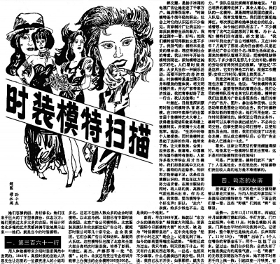 还有一位模特写道:“前天从车间抽到厂模特队,我真高兴。但没有想到在这一天半的排练中,接连发生了几件不愉快的事,还有人接二连三地到领队那儿去说我是‘臭美妞’……唉!当个模特真难!今天是第一次给厂职工演出。还没上装,就听到前排的年轻人怪声怪调地喊:‘站出来,让我们看看。’小兰被气哭了,我也受不了了,真想把他们轰出去。”(1985年1月19日《北京晚报》7版,《“女模特”的日记》)