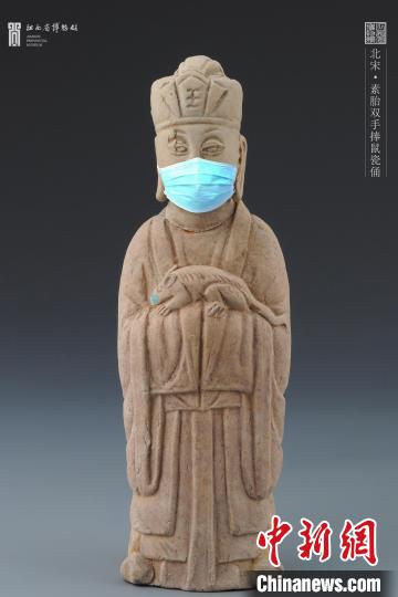江西省博物馆利用本馆特色展品制作海报,进行疫情防护宣传。 江西省博物馆 摄