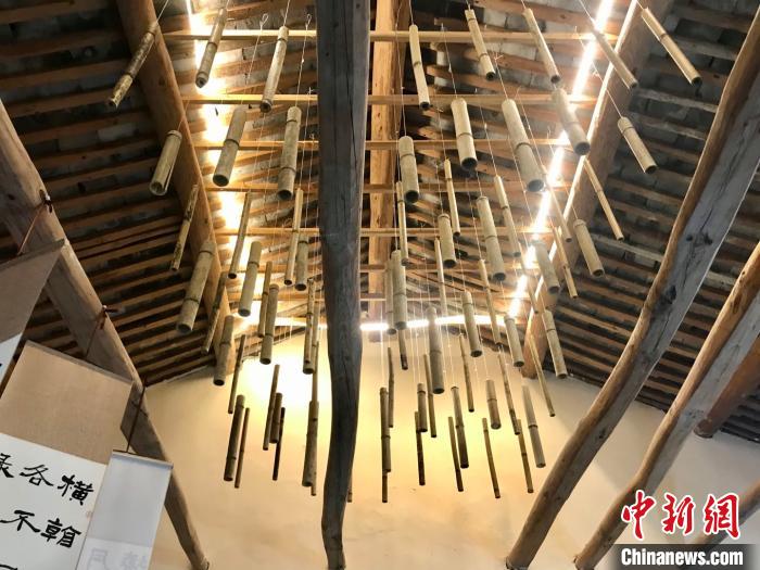 村民自建的美术馆内,取材当地毛竹制成艺术品。 李典 摄