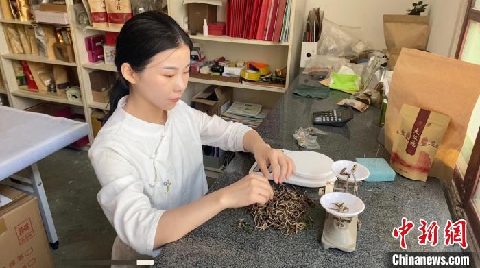 中新网福州9月7日电 (叶秋云)漂浮在热水里的花瓣慢慢下沉,慢慢在水中绽放,慢慢打开,露出花蕊,花舞茶的美就这么展露无遗。近日,记者约访花舞茶工艺二代传承人李阳,亲眼目睹在她的手中,花瓣与茶芽完美结合,能喝又能看,成为一道美妙的风景。