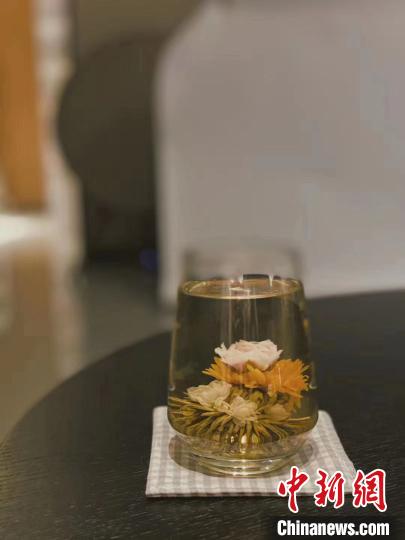 采访时,李阳为记者展示花舞茶产品。在泡茶过程中,可以看到茶球在一分钟内完成迷人绽放,花在水中漫舞,好似清水出芙蓉,巧夺天工。