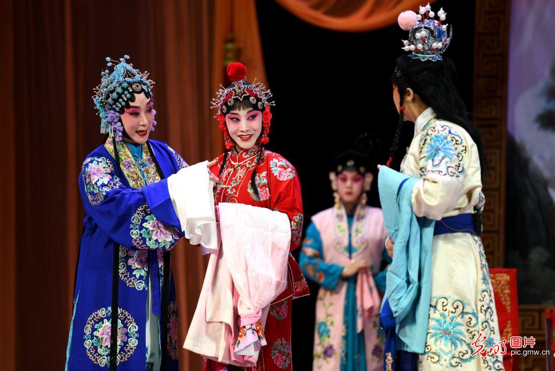 2020年9月5日,河北石家庄大剧院,石家庄市河北梆子剧团演员在表演剧目《穆桂英挂帅》。为进一步丰富市民的文化生活,该市组织市属文艺院团开展经典剧目惠民演出活动,为市民送上一道道文化大餐。(陈其保摄/光明图片)
