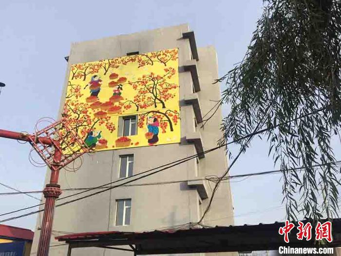 近期,当地农民画家主要关注“光盘行动”,巨幅农民画还登上当地楼体。